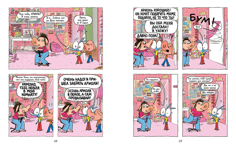 «Ариоль» — это серия весёлых комиксов о повседневной жизни маленького ослика и его лучшего друга, непослушного, но очень симпатичного поросёнка. Они вместе ходят в школу, вместе ездят на каникулы, вместе играют и вместе валяют дурака. Их придумал Эмманюэль Гибер, один из наиболее авторитетных французских комиксистов, обладатель премии Рене Госинни за сценарное мастерство, а нарисовал известный детский иллюстратор Марк Бутаван.