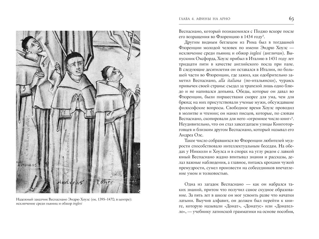 Флоренция эпохи Возрождения. Эти слова приводят на память образы прекрасных творений искусных художников и архитекторов. Но не менее значимыми были свершения творцов в иной области: флорентийских охотников за рукописями, писцов, ученых и книготорговцев, которые смахнули пыль веков с античного знания, открывая и распространяя которое, они творили новый просвещенный мир.