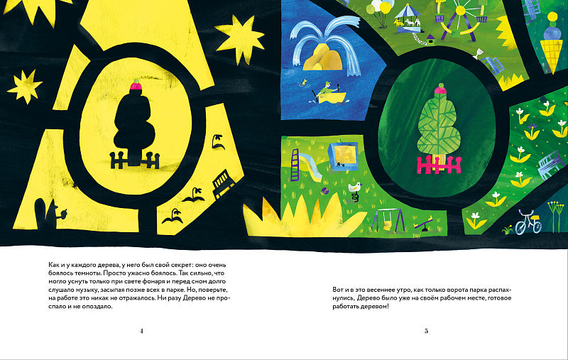 Есть ли жизнь за воротами парка? Может ли дерево застрять в лифте? Какие пластинки любят слушать по вечерам Белая Берёза и Белый Медведь? Умеет ли трамвай плавать, а яблоня — превращаться в привидение? Всё это предстоит узнать Дереву, которому однажды пришлось покинуть свой родной парк. А это, поверьте, непросто — остаться без дома, без работы, без друзей — хорошо воспитанных деревьев. Особенно если ты Дерево, которое боится темноты и не может заснуть без ярко горящих парковых фонарей.