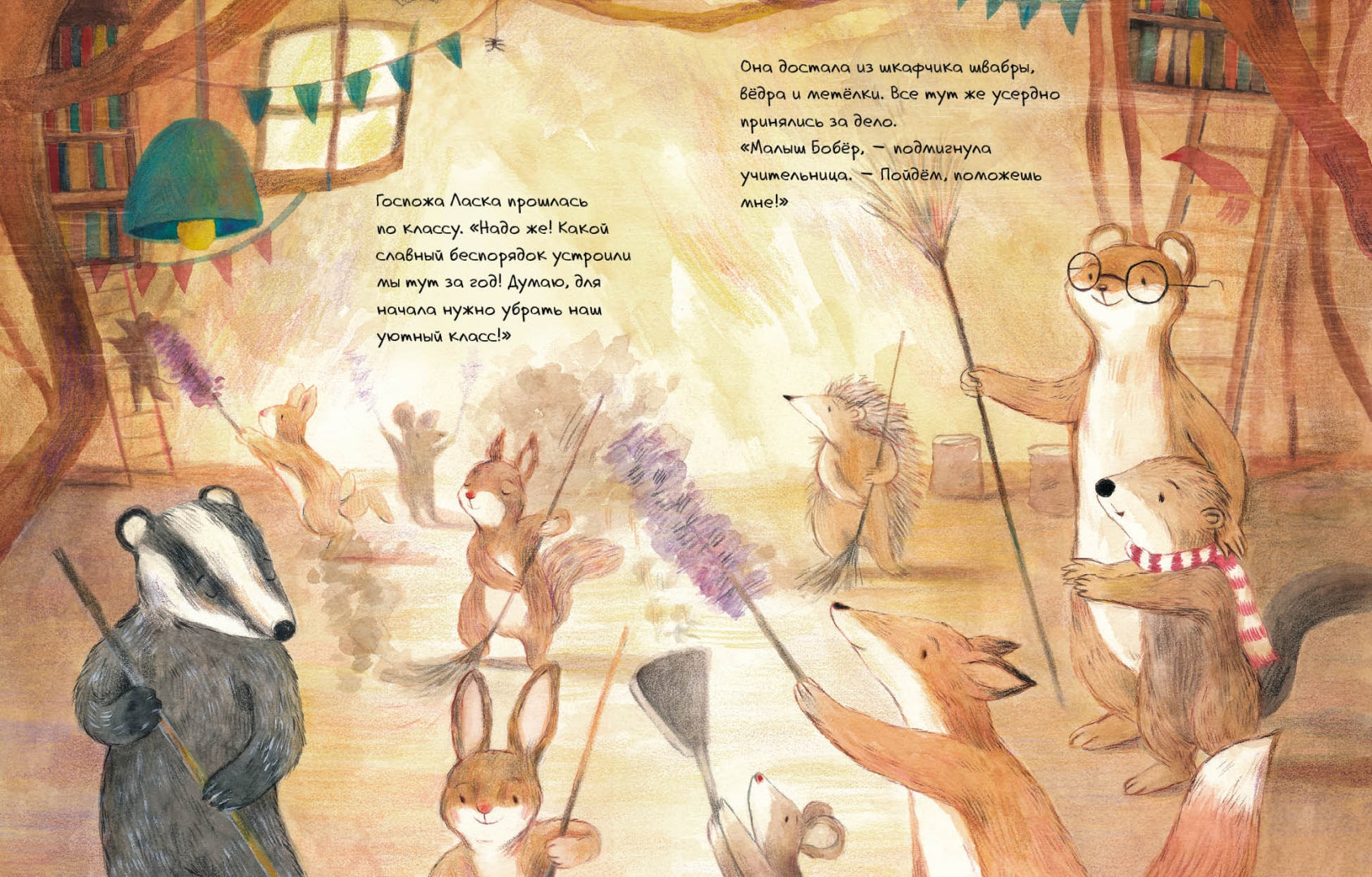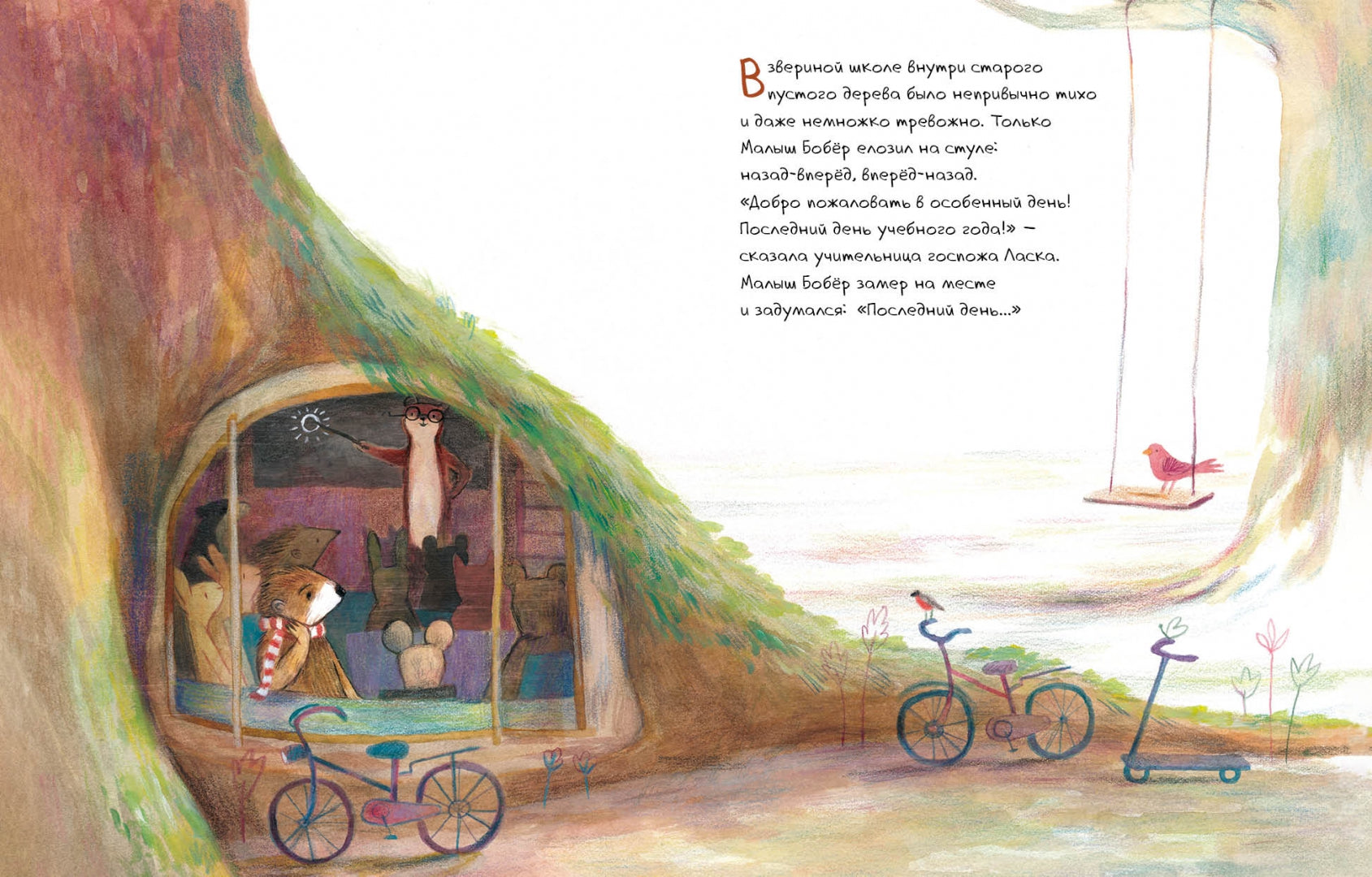 Вот и настал последний день учёбы. Все зверята счастливы и ждут каникул. И только Малыш Бобёр грустит - он не хочет прощаться. К счастью, любимая учительница знает, как его развеселить.