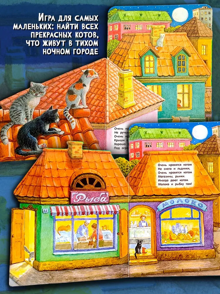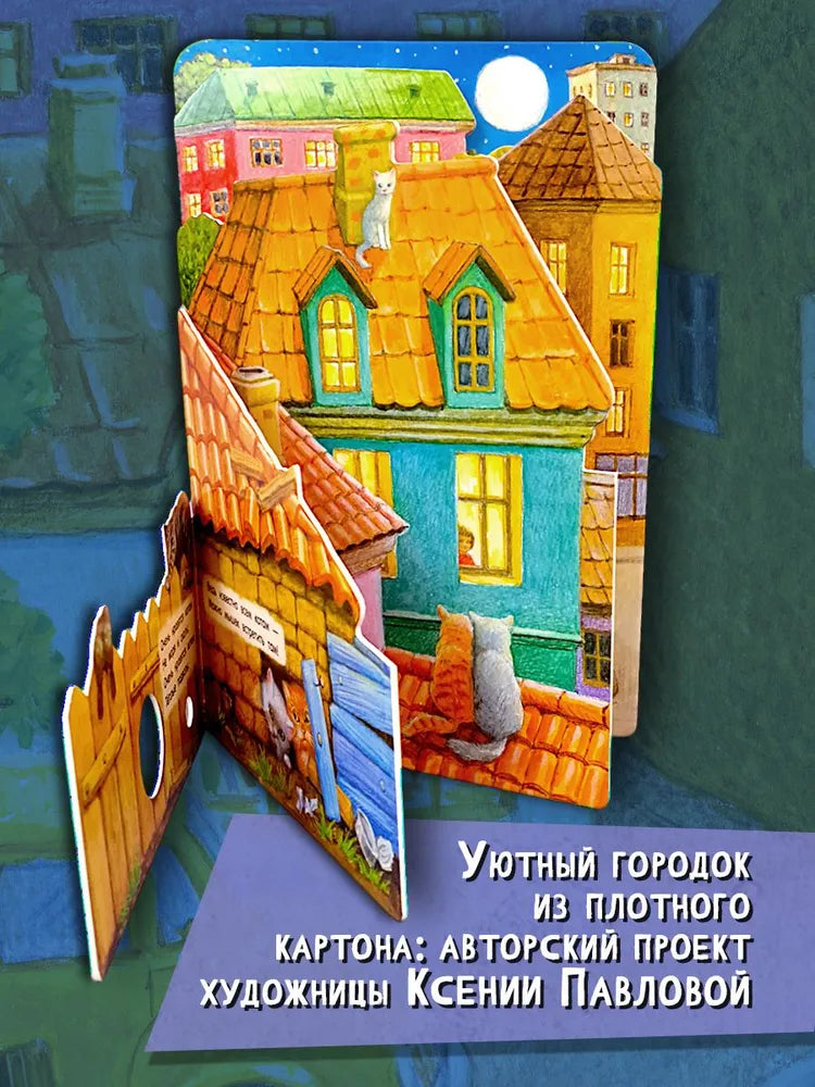Чудесный авторский проект художницы Ксении Павловой! Это не просто книга-игрушка - это целый город, а на каждой странице здесь прячутся кошки и коты: зеленоглазые романтики, полосатые шкодники, пушистые умницы и любители покушать. Ребенок сможет отыскать их всех, а заодно узнает немного о жизни и повадках этих обаятельных, но независимых животных. Поиграй с котами в прятки! Загляни в теплые уютные дома и на черепичные крыши, в подвалы и чердачные окошки, погуляй по кошачьему городу и отыщи всех его обитателей. Стихи Дарьи Герасимовой. Книга про кошек для детей 3-5 лет.