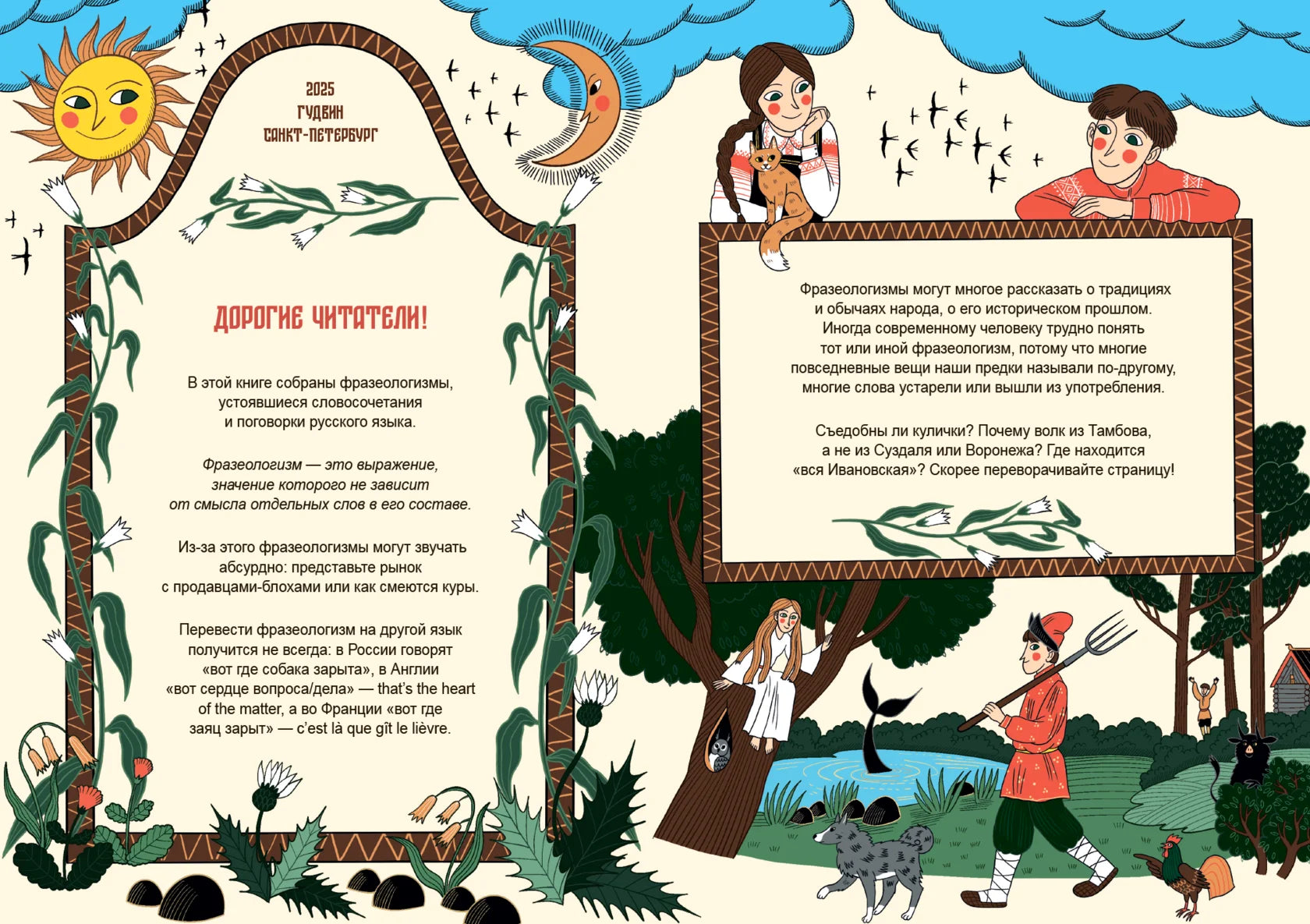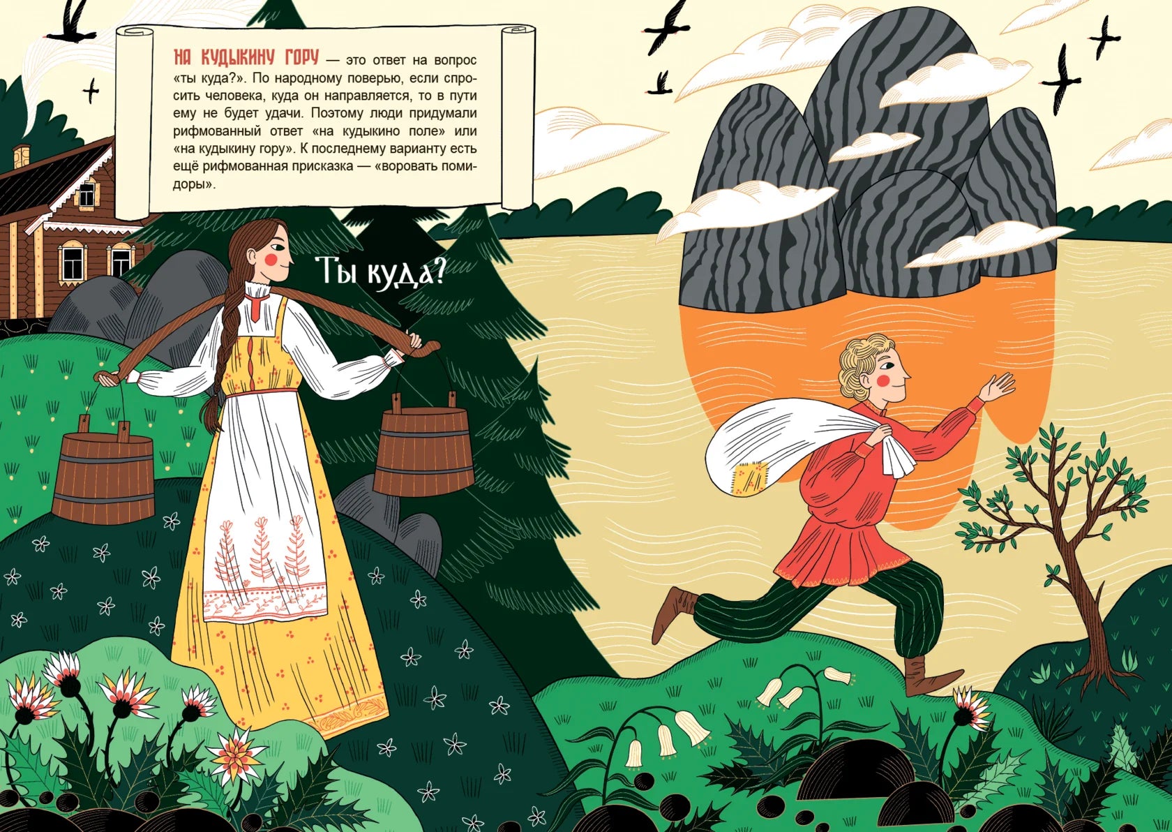 Книга Анастасии Смирновой «Где находится Кудыкина гора?» сочетает юмор, традиции и увлекательно рассказывает о русских пословицах и фразеологизмах. Красочные иллюстрации, вдохновлённые сказками, традиционными костюмами и старинной архитектурой, подчёркивают, что пословицы — неотъемлемая часть нашего наследия, как и народные сказания. В книге вы узнаете много нового о русском языке, его развитии и влиянии других культур, а также о легендах, которые передаются из поколения в поколение и живы по сей день.