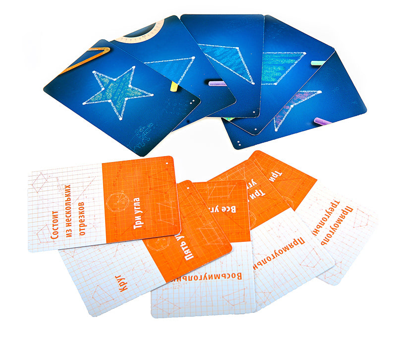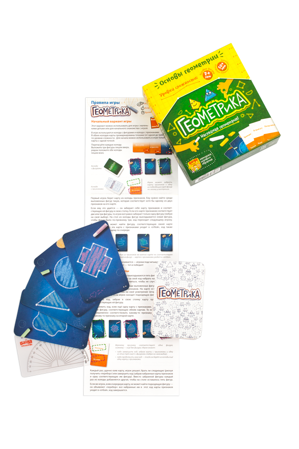 Простая и увлекательная настольная игра «Геометрика» помогает быстро и весело усвоить базовые геометрические термины и понятия. Кроме того, игра учит определять их на практике, на картах с заданиями. Это позволяет не просто запомнить термины, а продуктивно использовать их в учёбе.
