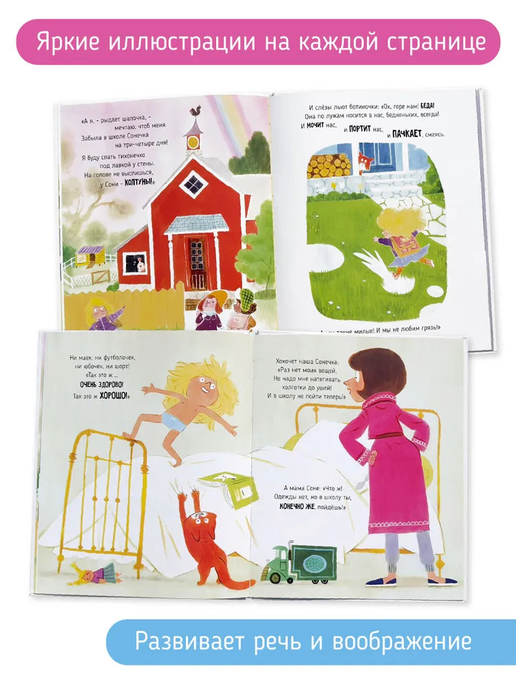 "Сбежавшая одежда" — увлекательная история о том, как вещи могут обидетьсяКаждое утро Сонечка ругает свою одежду. Она совсем не любит ее надевать! Однажды платьица, юбочки, брючки и все-все-все остальные вещи очень обиделись на хозяйку. Ведь девчушка очень плохо обращается с ними! Что будет, если они решат проучить Сонечку? Эта захватывающая история в стихах предназначена для детей от 3 лет и идеально подходит для совместного чтения перед сном.