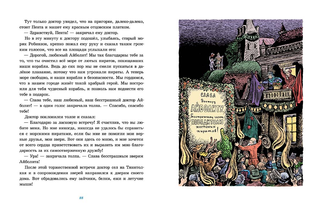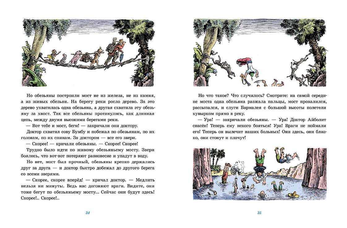 В переиздание сказочной повести Корнея Чуковского «Доктор Айболит» включены две части: «Путешествие в Страну Обезьян» и «Пента и морские пираты». Именно их с любовью и глубоким вниманием к персонажам и деталям иллюстрировал художник Владимир Конашевич