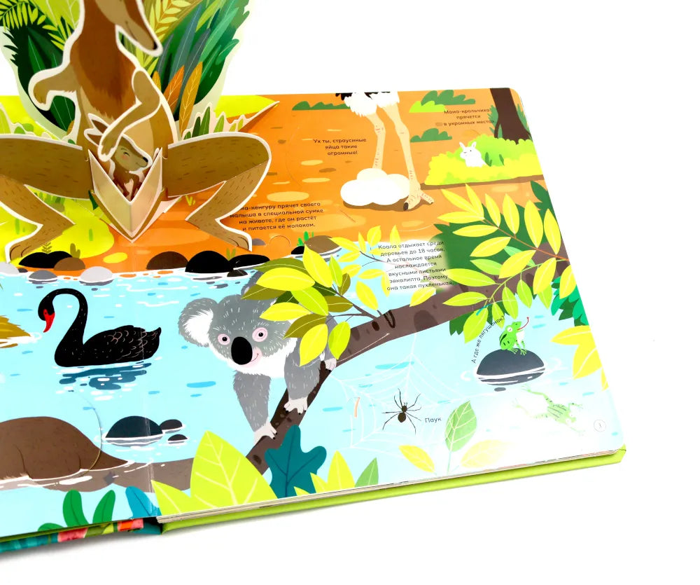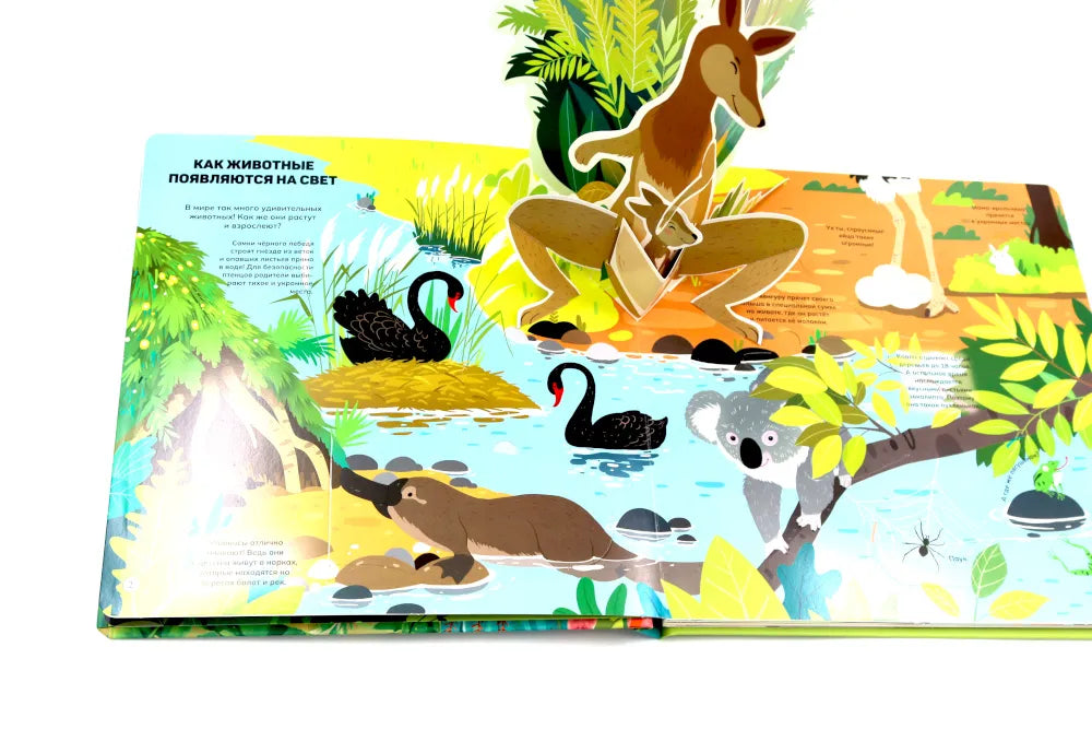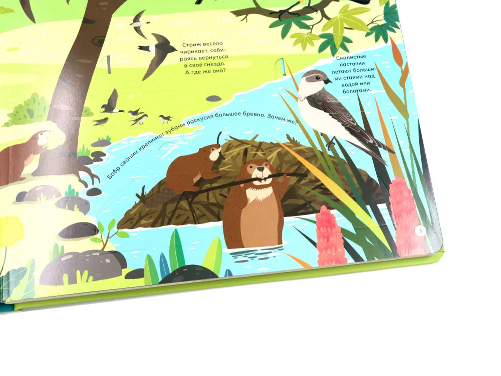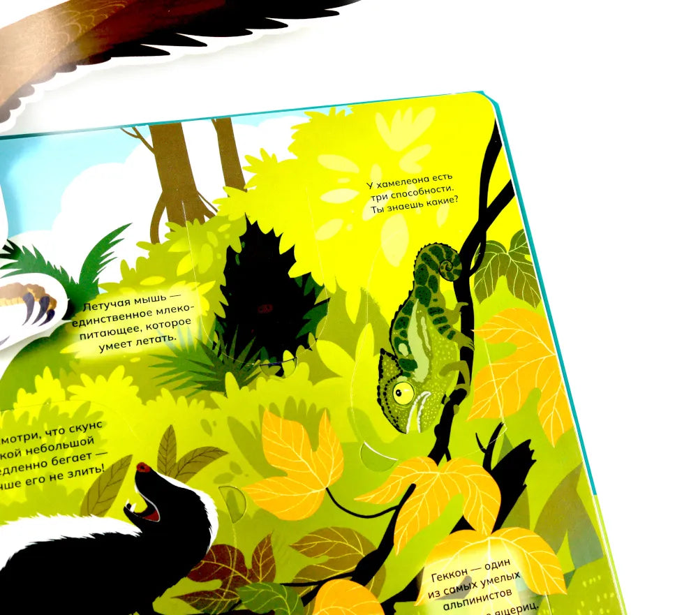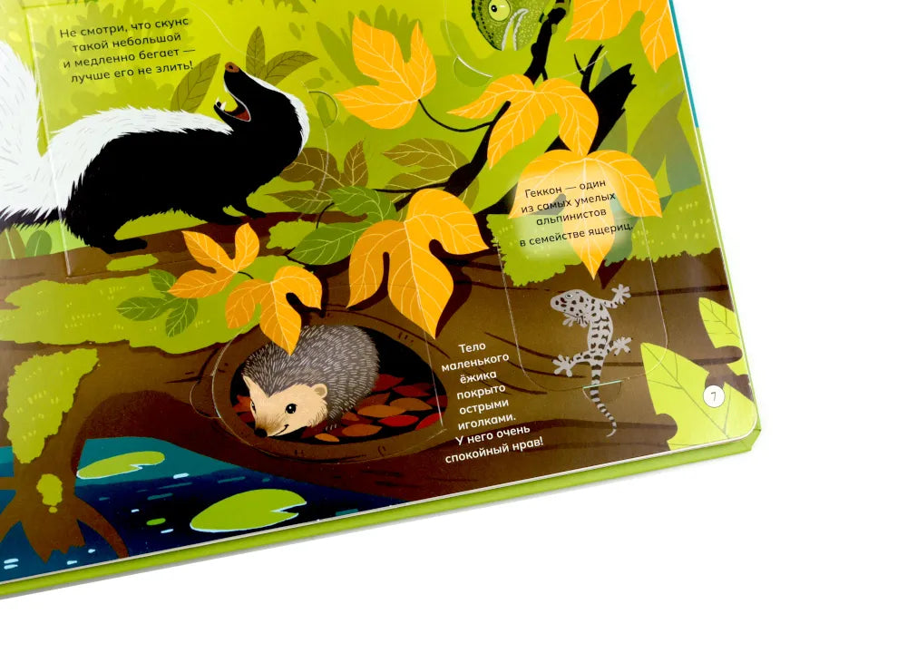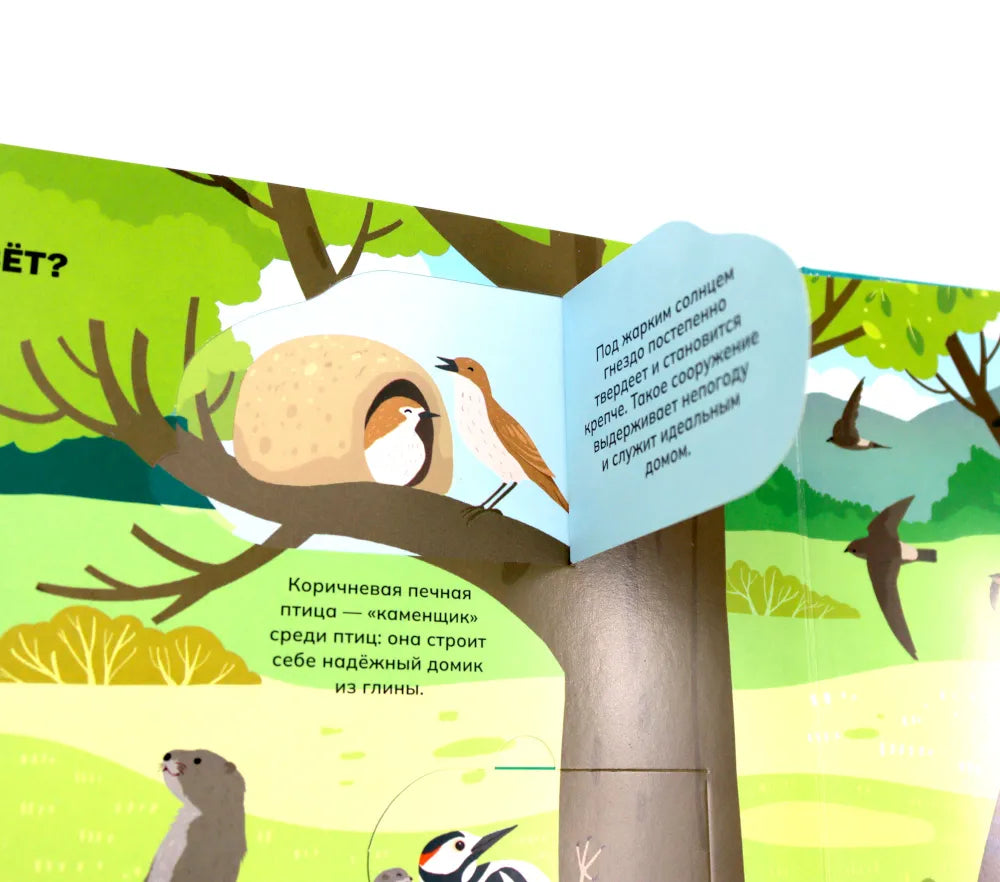 Отправимся в путешествие по разным уголкам планеты! Ты сможешь погулять по саванне или заснеженному лесу и познакомиться со многими их обитателями: от табунов зебр и прайда львов до бурого медведя, который ушёл в спячку на зиму. Из книги ты узнаешь: • Зачем бобрам такие крупные и крепкие зубы • Кто носит звание самого быстрого животного • Как звери защищаются от врагов • Какие птицы спят днём, а бодрствуют ночью • Зачем животные впадают зимой в спячку 52 окошка 2 объемные конструкции