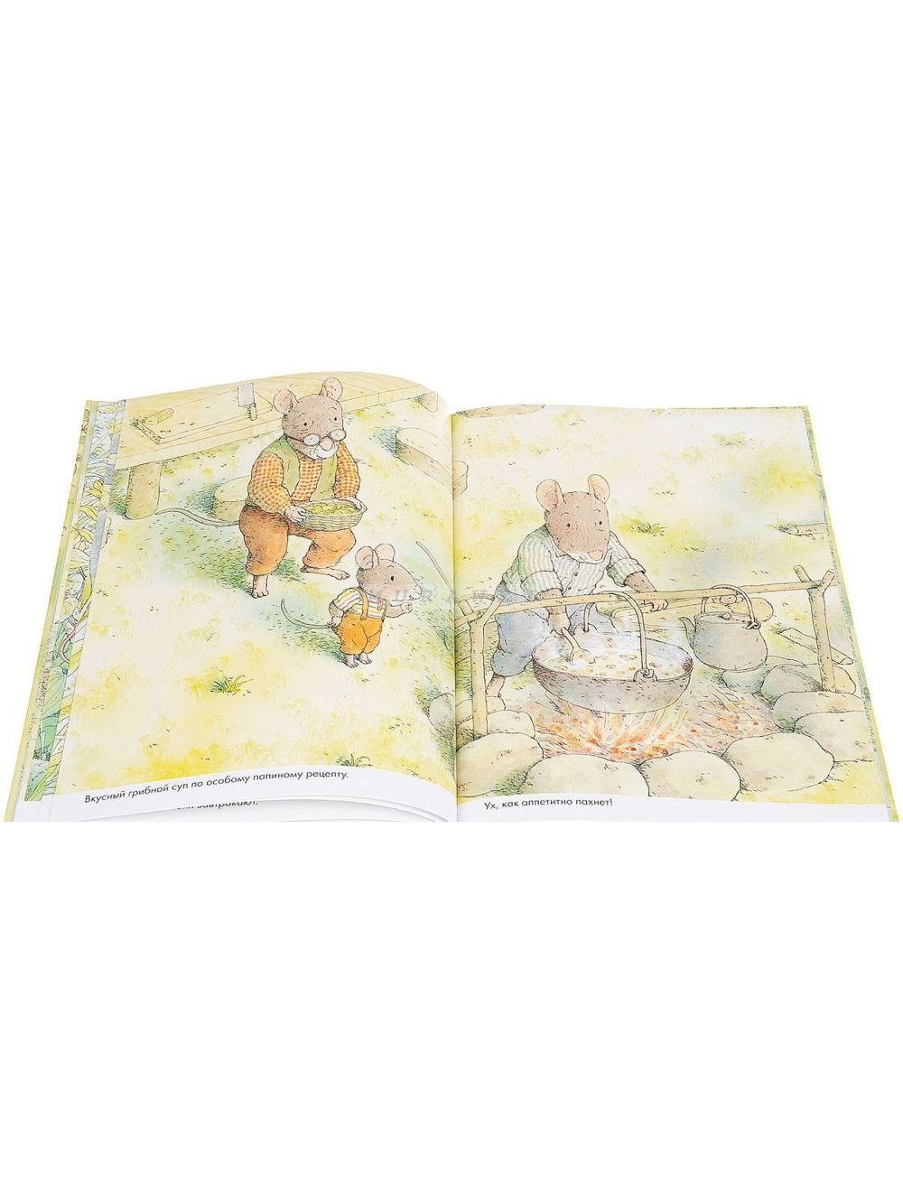 В первой книге серии «14 лесных мышей. Завтрак» — все члены семьи просыпаются утром, кто раньше, кто позже. У всех есть свои привычные дела и роли: шестеро мышат отправляются за свежими ягодами, мама, бабушка и две старших дочки пекут пирожки. Папа, дедушка и два мышонка варят грибной суп. И вот, стол полон вкусных угощений, можно позавтракать и начинать новый, полный событий день!