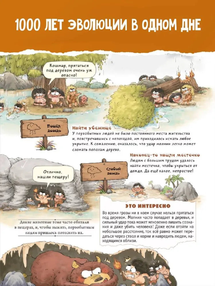 Всё о быте древних людей – в яркой и весёлой энциклопедии для детей! Книги серии детских энциклопедий «Внимание: первобытный человек!» с помощью красочных иллюстраций и весёлого текста рассказывают детям о том, как жили наши древние предки. Как первобытные люди совершенствовали свои укрытия? Как рыли землянки? Как строили жилища на деревьях? Что такое дом на сваях? Следуя за временной шкалой, читатель познакомится с самыми важными вехами эволюции, узнает много интересного о доисторическом мире и даже сможет сравнить распорядок дня древнего человека со своим собственным. Эта книга станет отличным подарком для мальчика и девочки, познакомит с историей наших древних предков, расширит кругозор и поможет на уроках в школе. Познавайте мир – весело и увлекательно!