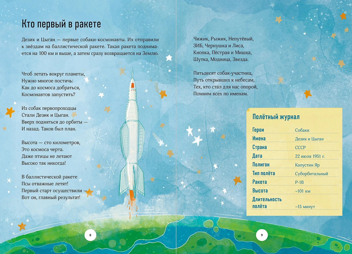 Книга объединяет детей и родителей в исследовании первых шагов человечества к звёздам. Понравится детям от пяти лет: всем, кто любит космос и интересуется историей его освоения.
