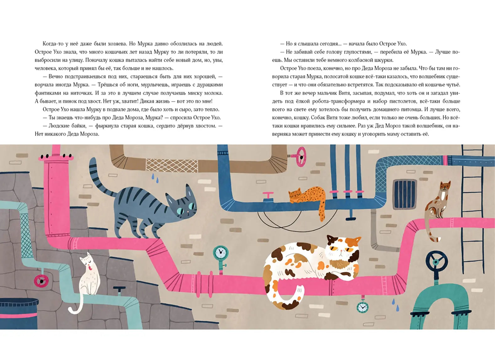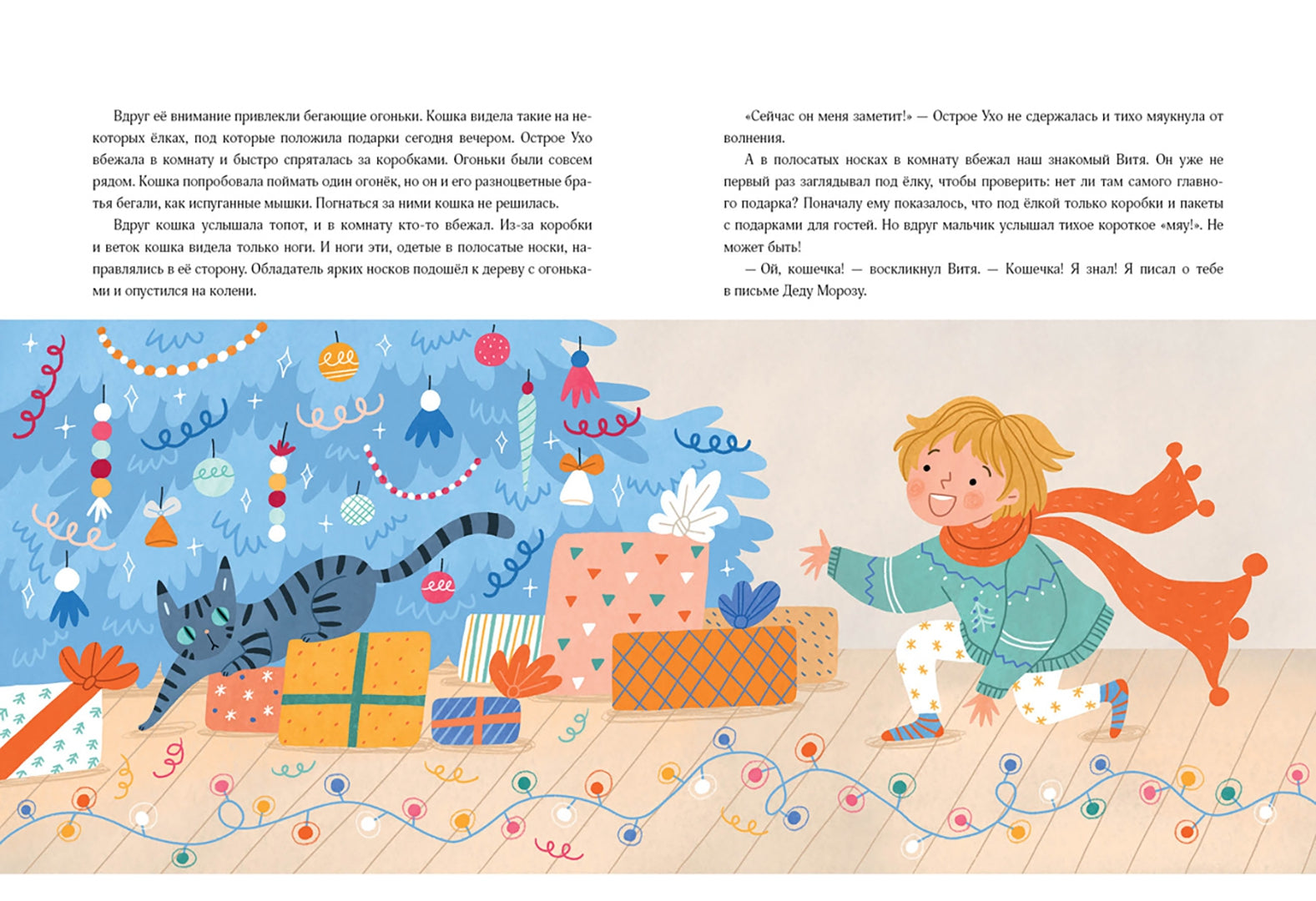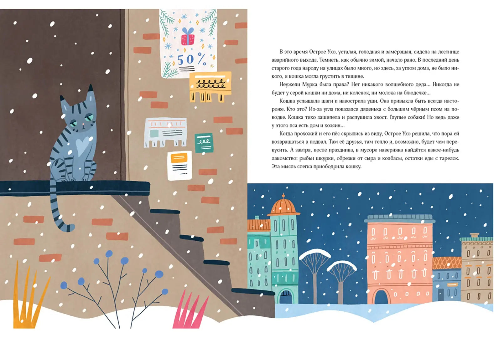 У полосатой серой кошки не было ни дома, ни хозяина, а только прозвище Острое Ухо за её великолепный слух. За два дня до Нового года кошка случайно услышала разговор мальчика Вити и его мамы про необычного волшебника - Деда Мороза. И уж очень захотела встретиться с ним. Пожалуй, потому, что у неё давно было одно заветное желание - найти себе дом, где почешут за ушком и дадут настоящее имя. Но как выглядит этот волшебник, который исполняет желания? И где его найти? Острое Ухо решила, что непременно отправится на его поиски. Однако найти настоящего Деда Мороза оказалось не так просто…