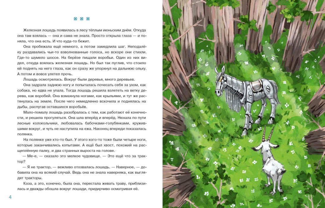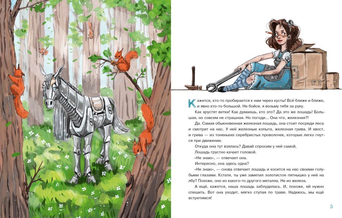 Однажды посреди леса появилась железная лошадь. Она не знала, как сюда попала и как её зовут! Никаких подсказок — только загадочная инструкция под седлом. И всё бы ничего, но лошадь захромала, и теперь ей нужна помощь. Но кто сможет помочь железной лошади? Ветеринар? Или автомеханик?