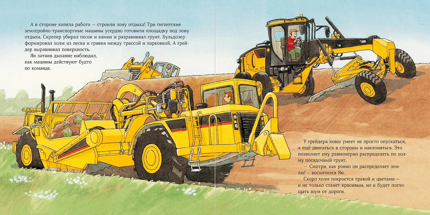 Как строятся дороги, по которым мы ездим каждый день? Вместе с Яном читатель отправится на грандиозную стройку — место, где каждая деталь и каждая машина играют свою роль в создании новой трассы. Мы узнаем, зачем нужен тяжёлый каток, как тоннелепроходческий комплекс прогрызает путь сквозь горы и что позволяет асфальтоукладчику создавать ровное покрытие. Эта история поможет увидеть в дорожном строительстве сложный процесс и воспитать уважение к труду людей, которые ежедневно меняют облик городов и делают нашу жизнь удобнее и безопаснее.