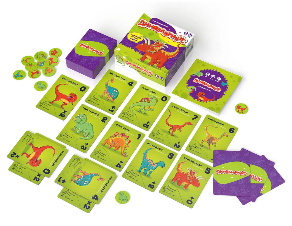 В "Динозаврикус" можно играть в компании друг против друга, составляя из карт сильнейшую пару динозавров. Или объединиться против игры — этот режим даже для одного игрока подойдёт. Правила простые, в игре могут учавствовать дети от 6 лет.