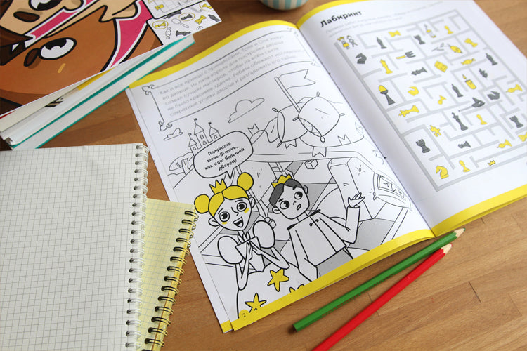 В тетради собраны 80 заданий, которые помогут подготовиться к шахматам: никаких схем и дебютов — только веселье!