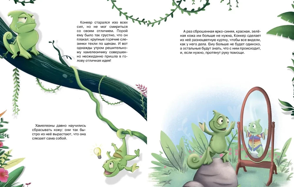 Простая и яркая история с весёлыми заданиями для саморазвития поможет объяснить малышу, почему важно быть собой.