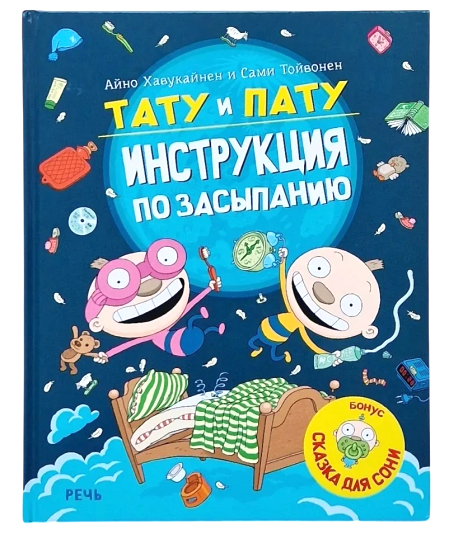 В гости к Тату и Пату приходит племянница Соня, и братья придумывают тысячу разных способов, как уложить малышку спать. Они даже составили специальный справочник: в нём рассказано, как выбрать идеальную игрушку для засыпания, что произойдёт, если долго не ложиться спать, почему родителям можно не спать до поздней ночи, а детям – нет, и многое другое.