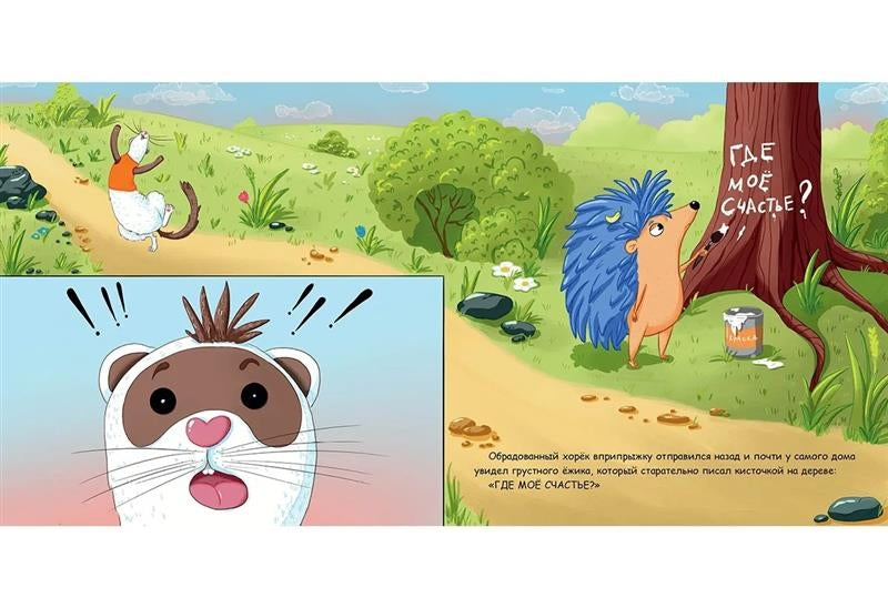 Хорёк обожал развлекаться, играть с друзьями и наслаждаться жизнью. Однажды, возвращаясь с прогулки, он заметил на стене одного из домов надпись: "Где моё счастье?". Хорёк погрузился в размышления. Неужели и его счастье куда-то пропало? И как оно выглядит? Хорёк без промедления отправился на поиски своего счастья!