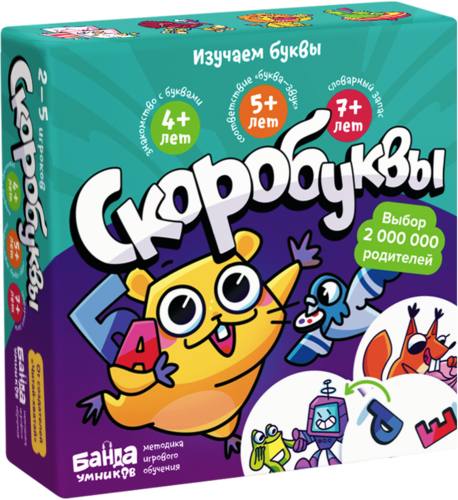 Игра познакомит с буквами и закрепит ассоциативное восприятие «буква-звук»: А — ананас, Б — бобёр. Увлекает с первого хода — хватать яркие фишки любят и дети, и взрослые! А яркие сюжеты расширяют словарный запас и тренируют воображение.