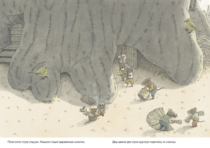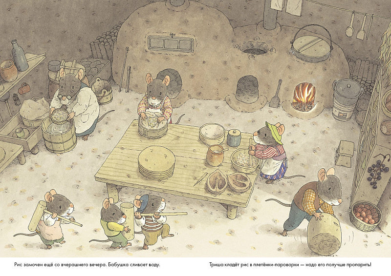 В каждой стране свои новогодние традиции! В книге «14 лесных мышей. Новый год» мышиное семейство готовит традиционное японское новогоднее блюдо — рисовые лепешки о-моти. Как любое праздничное блюдо, лепешки требуют усилий всех членов семьи — сделать тесто, развести огонь в специальных печурках, приготовить вкусные начинки! Чем больше постараться — тем вкуснее яства на новогоднем столе!