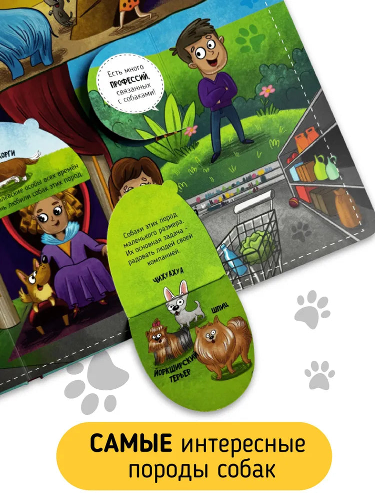 Эта яркая и познавательная книжка познакомит малышей с их четвероногими друзьями, ответив на самые интересные вопросы: что любят собаки? Почему у них всегда мокрый нос? Какие породы существуют и какие секреты скрывают домашние животные? Открывая красочные створки одного из 45 супер окошек, ваш ребенок узнает множество увлекательных фактов о поведении и особенностях собак — например, почему они роют норы!
