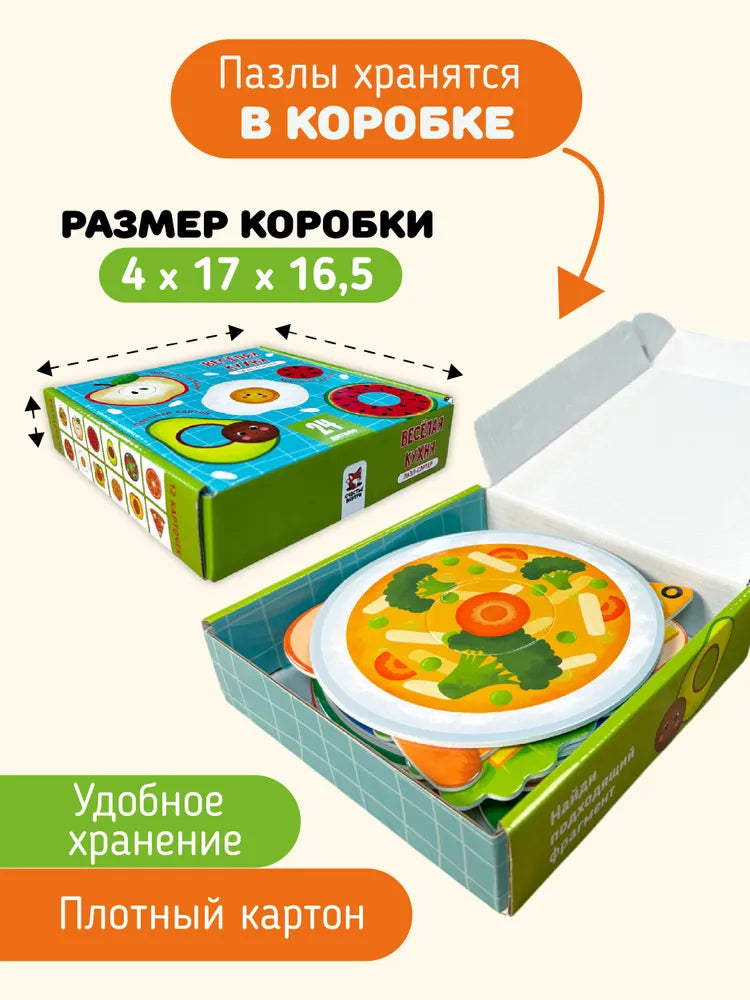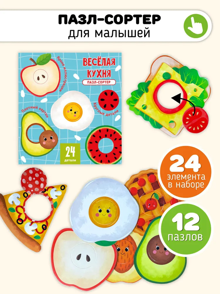 Представляем вашему вниманию увлекательный пазл-сортер "Весёлая кухня", который не только развлечет вашего ребенка, но и поможет ему узнать названия продуктов и вкусных блюд ! Этот яркий и красочный развивающий набор, разработанный специально для самых-самых маленьких детей, станет настоящим помощником в обучении, превращая процесс познания в увлекательную игру.