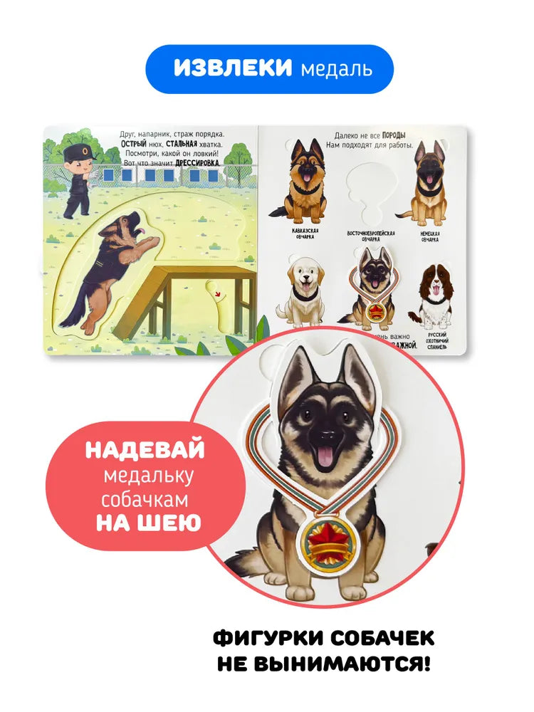 "Секретные дела полицейских" — это захватывающая интерактивная книга из серии Профессии, которая подарит вашим малышам незабываемое путешествие в мир правоохранительных органов! Вместе с дружелюбным героем детской развивашки юные полицейские смогут вернуть зайке игрушку, которую украл хулиган. Узнают кто такой регулировщик, познакомятся с основными дорожными знаками, а также увидят, какие породы собак пригодны для службы в полиции и какие виды экспертов существуют.