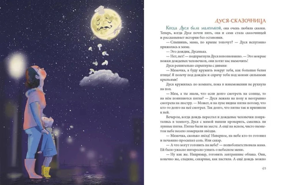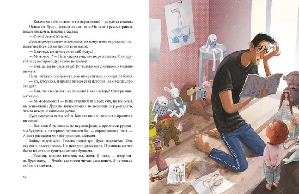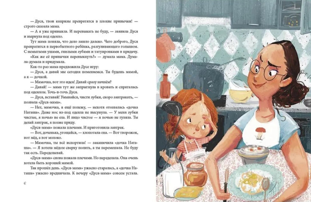 Чудесная хулиганка Дуся прославилась еще в раннем детстве, когда училась космически чистить зубы, заваривала в маминой голове кашу и превращала трамвай в сказочный театр. Теперь Дуся стала старше, а значит, и приключений будет больше! Дуся пишет книгу для папы, становится популярным фотографом и налаживает отношения с Китаем. Рисунки художницы Елены Баренбаум вышли настолько забавными и живыми, что кажется, рыжая непоседа вот-вот спрыгнет со страницы и пойдет играть со своими читателями. В новую книгу о Дусе вошли как рассказы из первого сборника, так и новые истории.