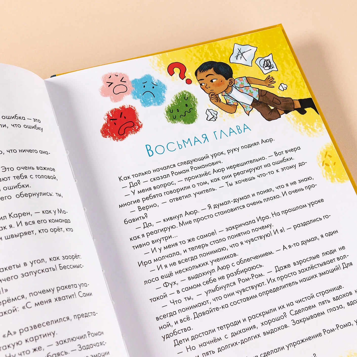Ученики 303 «А» класса ужасно боялись ошибок. Анюта не хотела плохо выступить на концерте, Карен переживал, что над ним будут смеяться, а Аюру просто становилось плохо от одной мысли о провале. Тогда их учитель Ром-Ром предложил вместе сделать работу над ошибками ― но не обычную, а эмоциональную. Вместо чтения наизусть и письма ребята представляли свои эмоции в виде эмодзи, придумывали для них цвет, а еще рисовали свою... внутреннюю обезьянку!