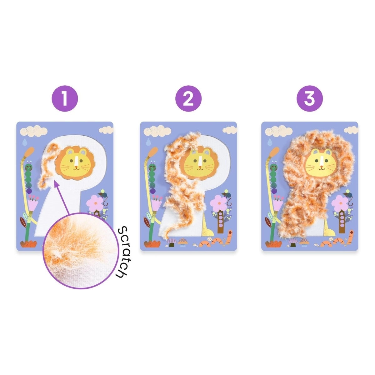 Eine Beschäftigung, die so liebenswert wie ein Kuscheltier ist! Das Kind setzt Stücke aus flauschiger Wolle auf die Velcro® Klettzonen, um niedliche Tiere zu kreieren. Die ideale Beschäftigung für Kinder von 3 bis 6 Jahren, die Sanftheit, Kreativität und Feinmotorik miteinander verbindet.