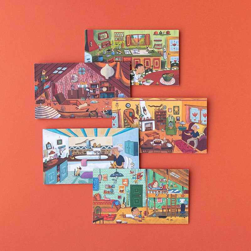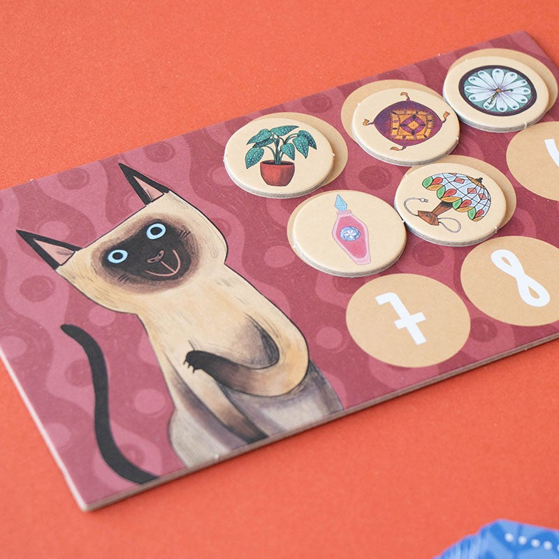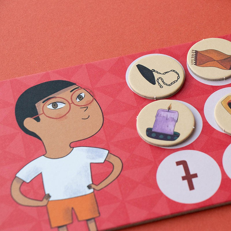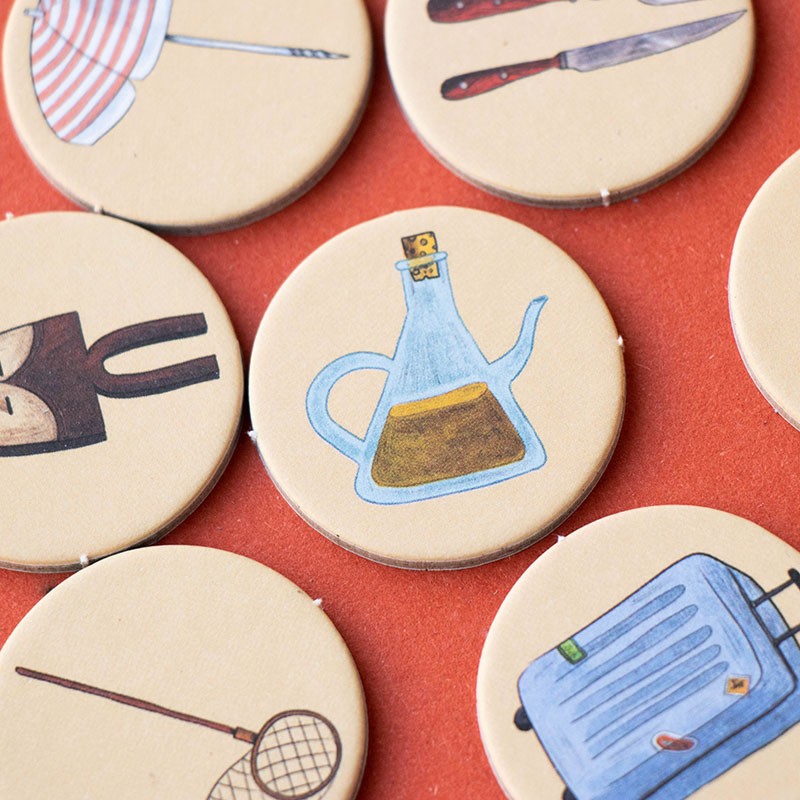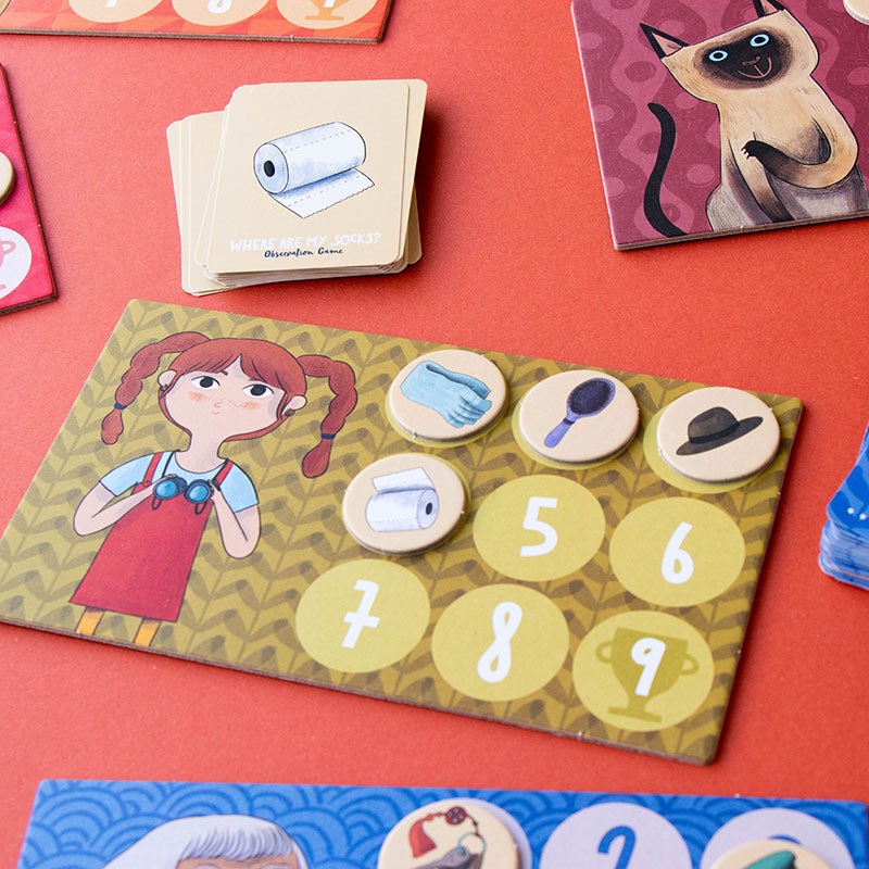 All the players at the same time look for the object among the cards and the quickest to find it places it on their character board. The first to collect 9 objects wins!