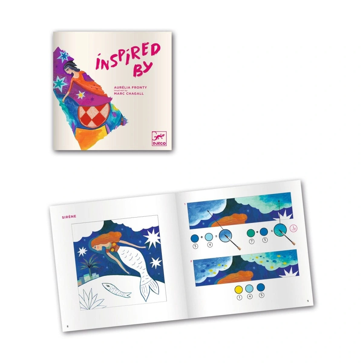 Eine Malaktivität mit Illustrationen, die vom Stil des großen surrealistischen Meisters, Marc Chagall, inspiriert sind. Das Kind fügt die Farben punktuell hinzu und legt sie übereinander, um die Geheimnisse dieser in der Luft schwebenden Figuren zu enthüllen.