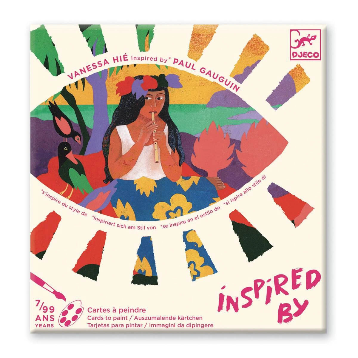 Eine Malset, das Sie dazu einlädt, den Malstil von Paul Gauguin, dem großen post-impressionistischen Meister, zu entdecken. Nach und nach werden die Bilder in Farbe getaucht und die Tahitianerinnen erwachen zum Leben.