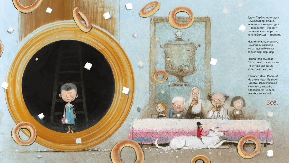 В этом издании озорные, весёлые, искромётные стихи Хармса прозвучали совсем по-новому благодаря удивительным, виртуозным иллюстрациям замечательного художника Игоря Олейникова, который в 2018 году получил золотую медаль Международной премии имени Андерсена – самую престижную награду в области детской книги.