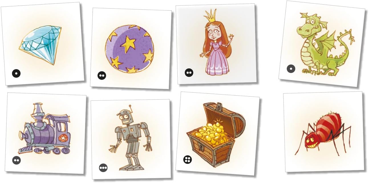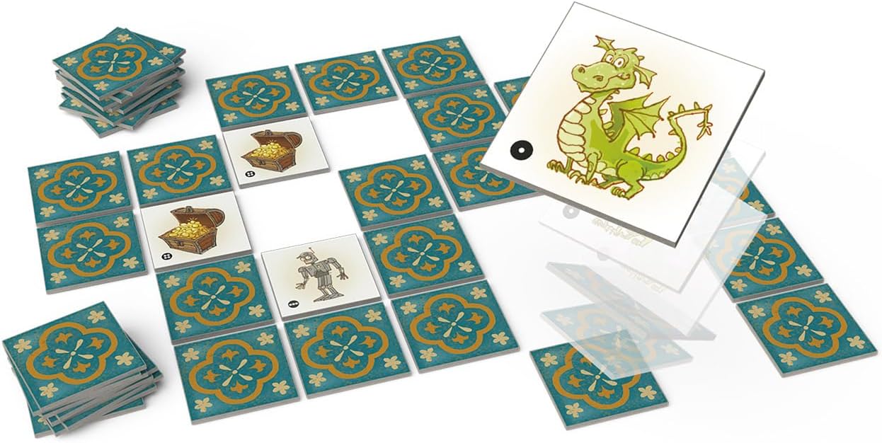 SCHATZ DER DRACHEN von Reiner Knizia ist ein spannendes Kinderspiel für 2-5 Spieler ab 5 Jahren. Bei dem Memo-Spiel mit Twist merken sich die Kinder, wo die wertvollsten Schätze versteckt sind. Wird ein Schatz gefunden, kann man aufhören oder aber in der Hoffnung auf eine noch größere Belohnung weitere Plättchen umdrehen. Dabei ist allerdings Vorsicht geboten – denn auch die feuerspeienden Drachen und fiesen Spinnen lauern unter den Kacheln...