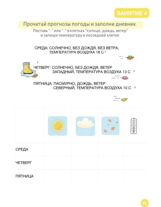 Книга для закрепления навыков полученных на занятиях по учебнику для первого класса. Можно использовать её на уроках, или дать как пособие для самостоятельных занятий летом. Занимаясь по этой книге, дети • закрепят навык чтения, • выучат написание большой буквы в словах, • повторят род, число существительных и прилагательных • поупражняются в спряжении глаголов.